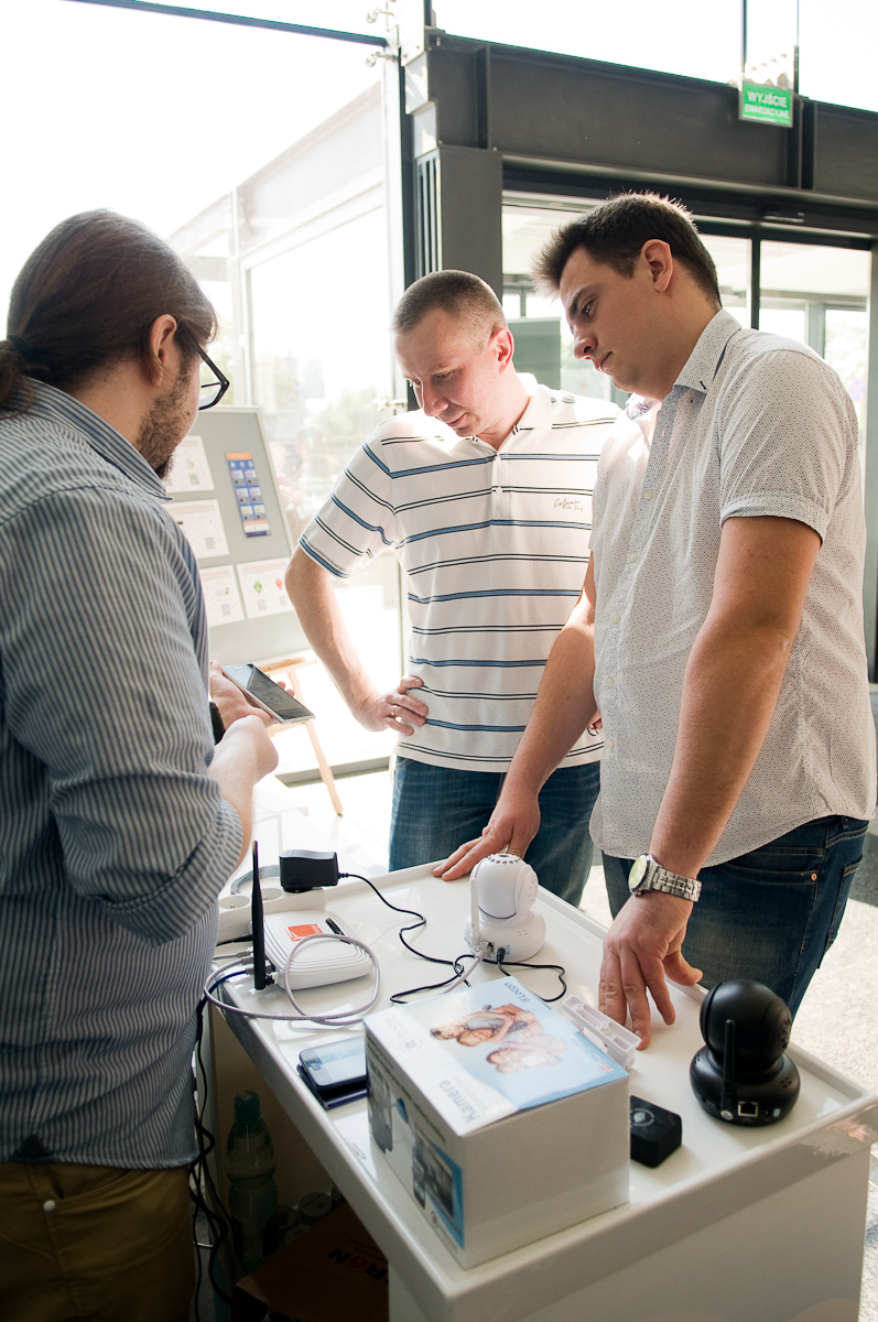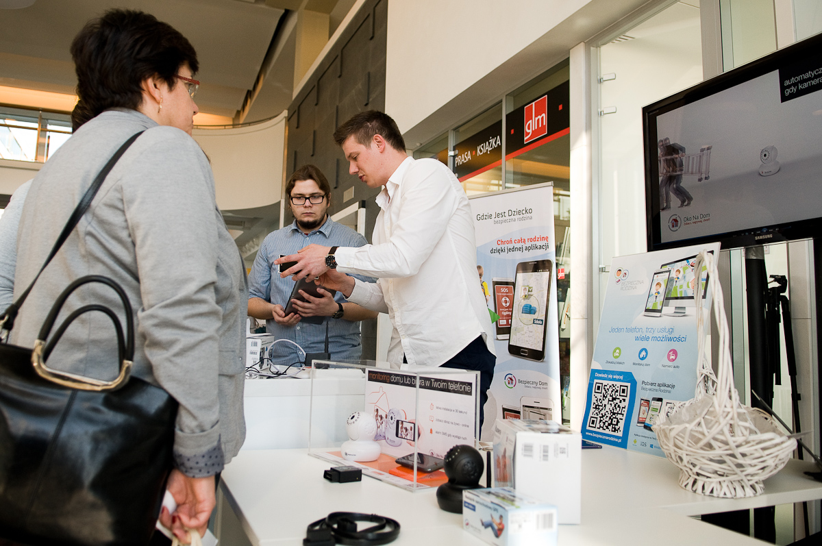 Każdy pracownik, który przyszedł w tym czasie do siedziby Orange mógł wziąć udział w wydarzeniu. Tuż przy wejściu hostessy służyły pomocą przy pierwszym uruchomieniu czytnika kodów oraz namawiały do wzięcia udziału w konkursie. Zeskanowanie kodu QR z ekranu umożliwiało wygranie jednej z nagród. Wśród nich był między innymi kod upoważniający do testowania naszych usług za darmo przez miesiąc! Dodatkowo można było skorzystać z atrakcji przygotowanych przez firmę Sony lub podejść do naszego stoiska, na którym prezentowaliśmy usługi związane z Bezpieczną Rodziną. Chętnie wyjaśnialiśmy wszystkie wątpliwości związane z dowolną usługą. Przyznajemy nieskromnie – zainteresowanie było duże, co nas oczywiście cieszy. Dodatkową atrakcją był konkurs z wiedzy o naszych usługach. Aż pięciu szczęśliwców odeszło od naszego stoiska z kamerą Oko Na Dom. Zwycięzcom jak zwykle gratulujemy!