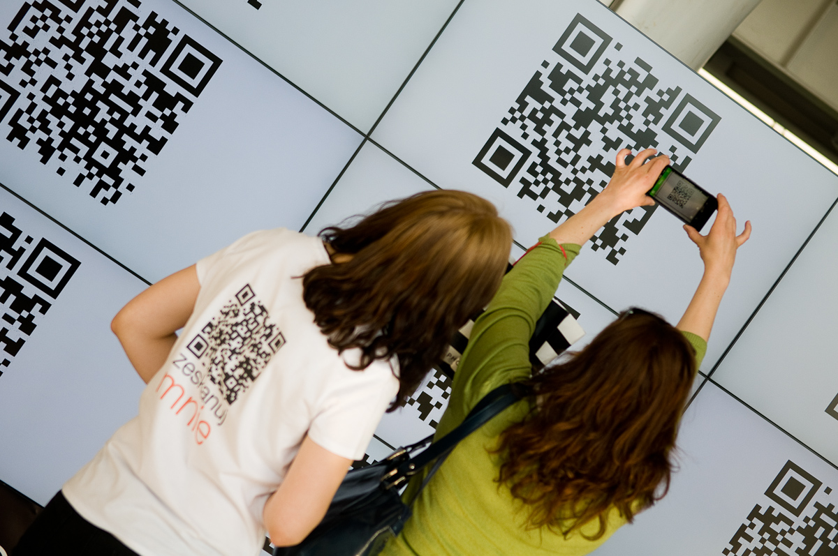 To rodzaj kodu, w którym można zapisać niemal dowolną informację w formie charakterystycznego, czarno-białego kwadratu. Umieszczony np. na plakacie po najechaniu na niego czytnikiem może uruchomić animację lub filmik, który obejrzymy na swoim telefonie. Sam czytnik kodów QR można pobrać w formie bezpłatnej aplikacji.